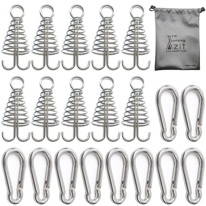 캠핑 아지트 탄소강CARBON STEEL 강철 비너 6호 10P 스프링 오징어 데크팩 10P 방수 주머니, 1개