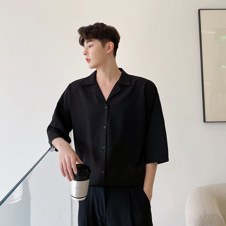 남성 반팔 여름 얇은 루즈핏 캐주얼 드레이프 다용도 셔츠