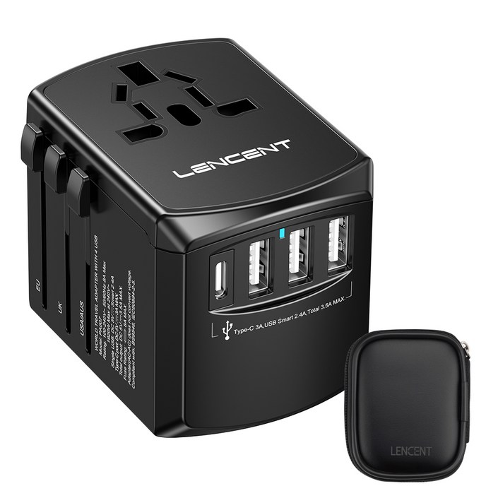 LENCENT 4포트 고성능 전세계 여행용 해외 멀티 플러그 어댑터 한국 미국일본태국베트남중국호주영국싱가포르말레이시아 변환 Type ACGI 플러그 PA007B, 1개