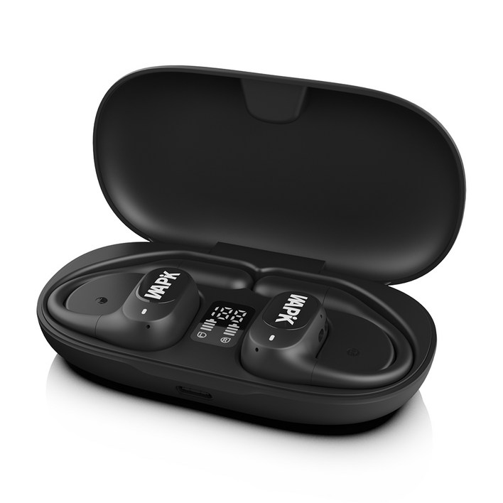 와피크 귀걸이형 RS3 오픈핏 무선 이어폰 오픈형 블루투스 에어전도 운동 게임용, 블랙
