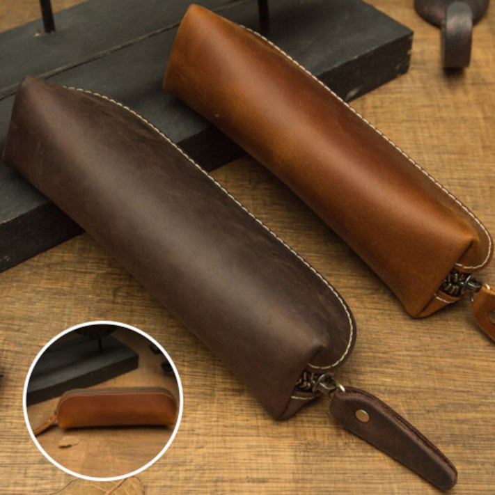 봄밤 직장인 대학생 소가죽 만년필 필통