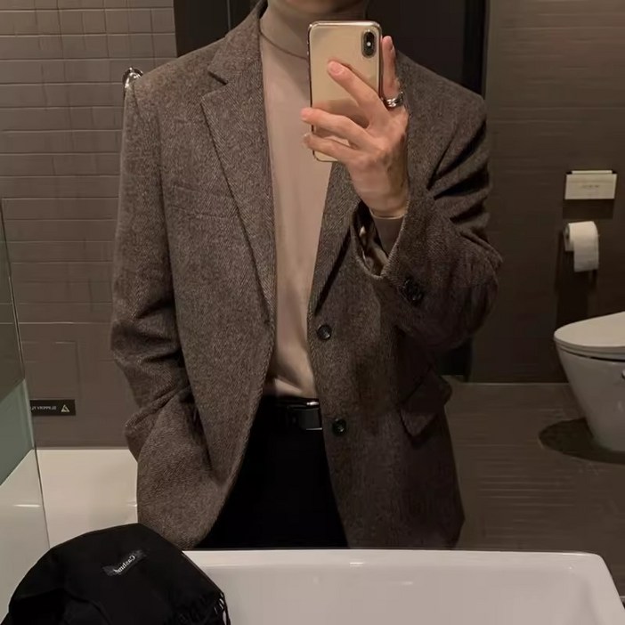 CBHV 남성 오버핏 캐주얼 정장 자켓 데일리 아우터 하객룩 헤링본 코트