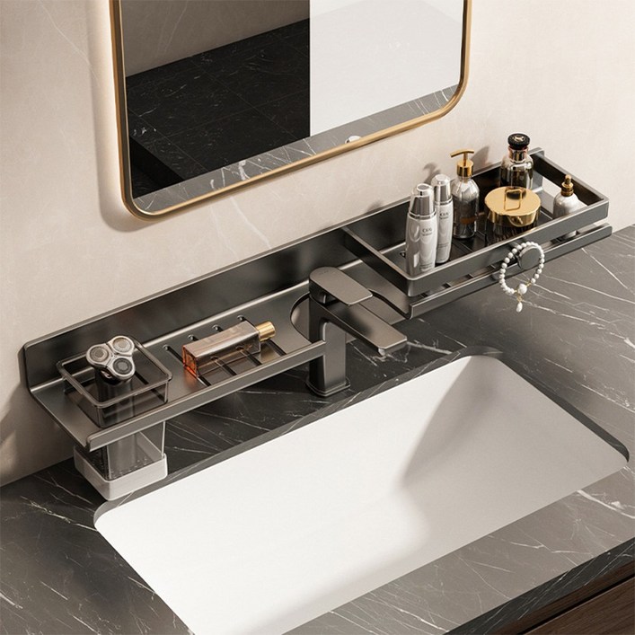 홈비 올인원 무타공 세면대 정리 욕실 선반, 그레이, 1개