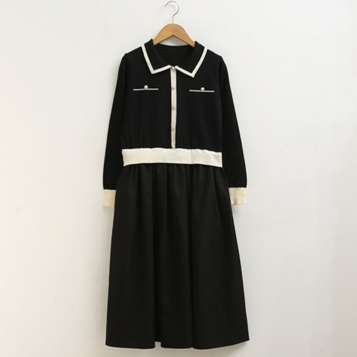 피핀 여성용 배색 진주 니트 롱 원피스 38770