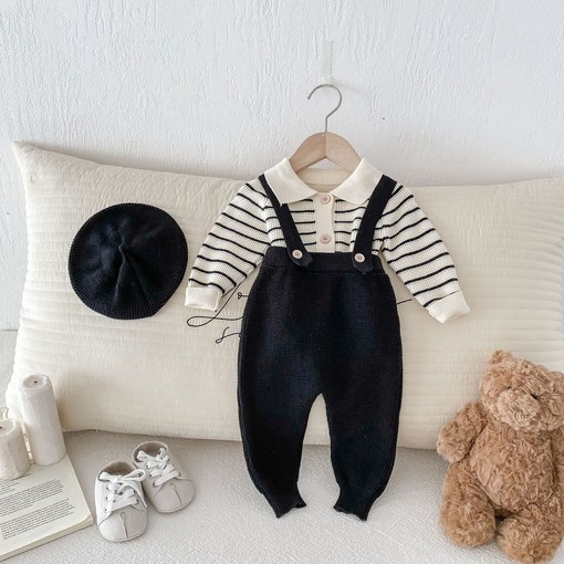 베베앤로아유아 여아 남아 공용 유아 신생아 백일 6개월 돌 외출복 스트라이프 벨벳니트